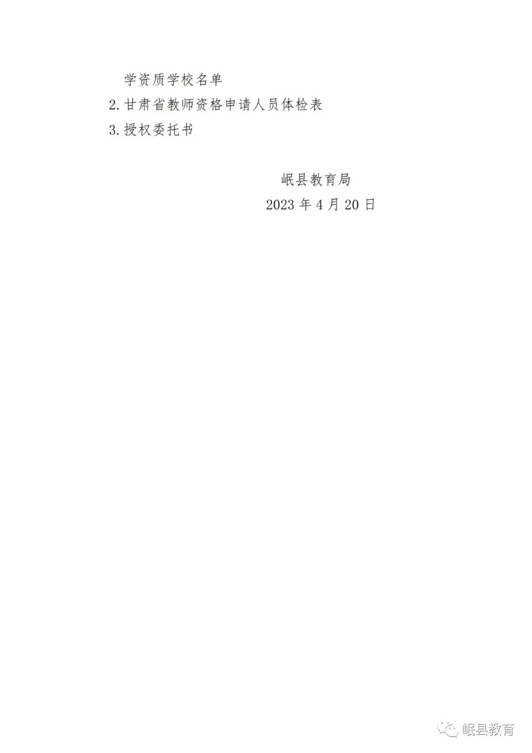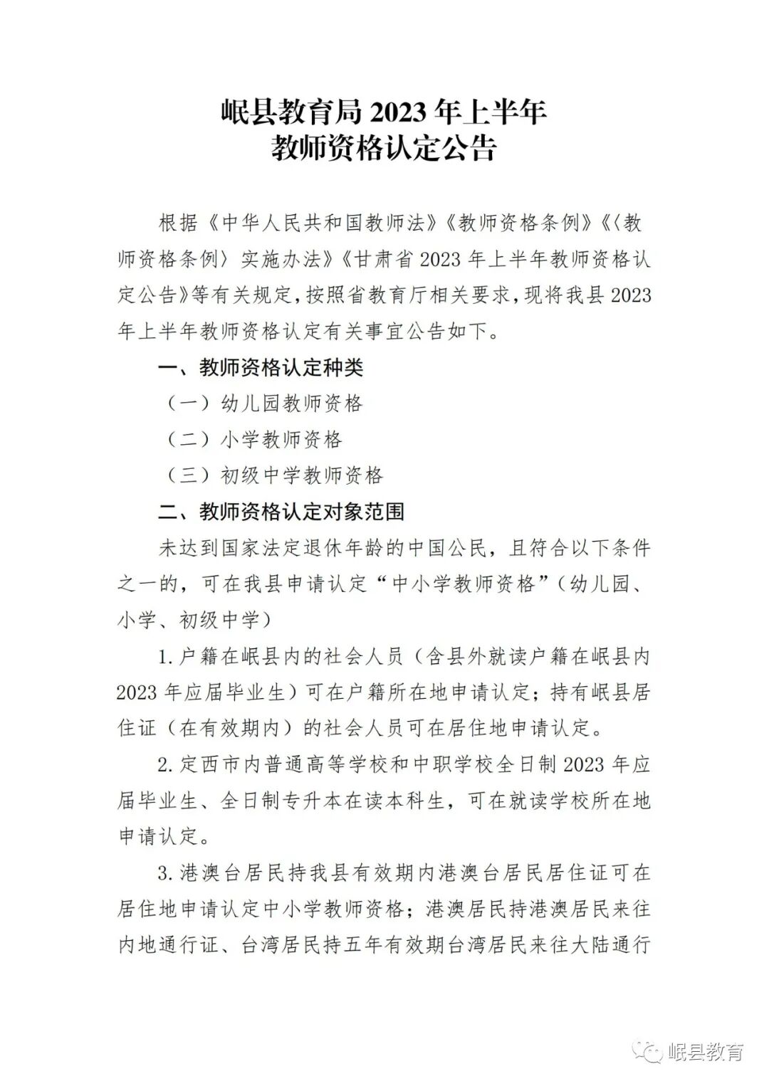 【导读】华图甘肃人事考试网提供以下人事考试信息:岷县教育发布:2023年上半年甘肃定西岷县教育局教师资格认定公告,关注公众号:甘肃华图(gshtjy),获取更多资讯!